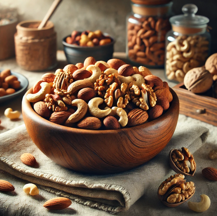 아몬드, 호두, 캐슈넛 등은 불포화지방산과 단백질이 풍부합니다. 견과류는 나쁜 콜레스테롤을 낮추고 좋은 콜레스테롤을 증가시켜 심혈관 건강에 도움을 줍니다. 그러나 칼로리가 높으므로 하루 4분의 1컵 정도로 섭취량을 조절하는 것이 중요합니다.