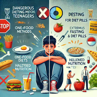 많은 청소년들이 잘못된 다이어트 방법을 따라 체중 감량을 시도하다가 건강을 해치는 경우가 많습니다. 다음과 같은 다이어트 방법은 반드시 피해야 합니다.