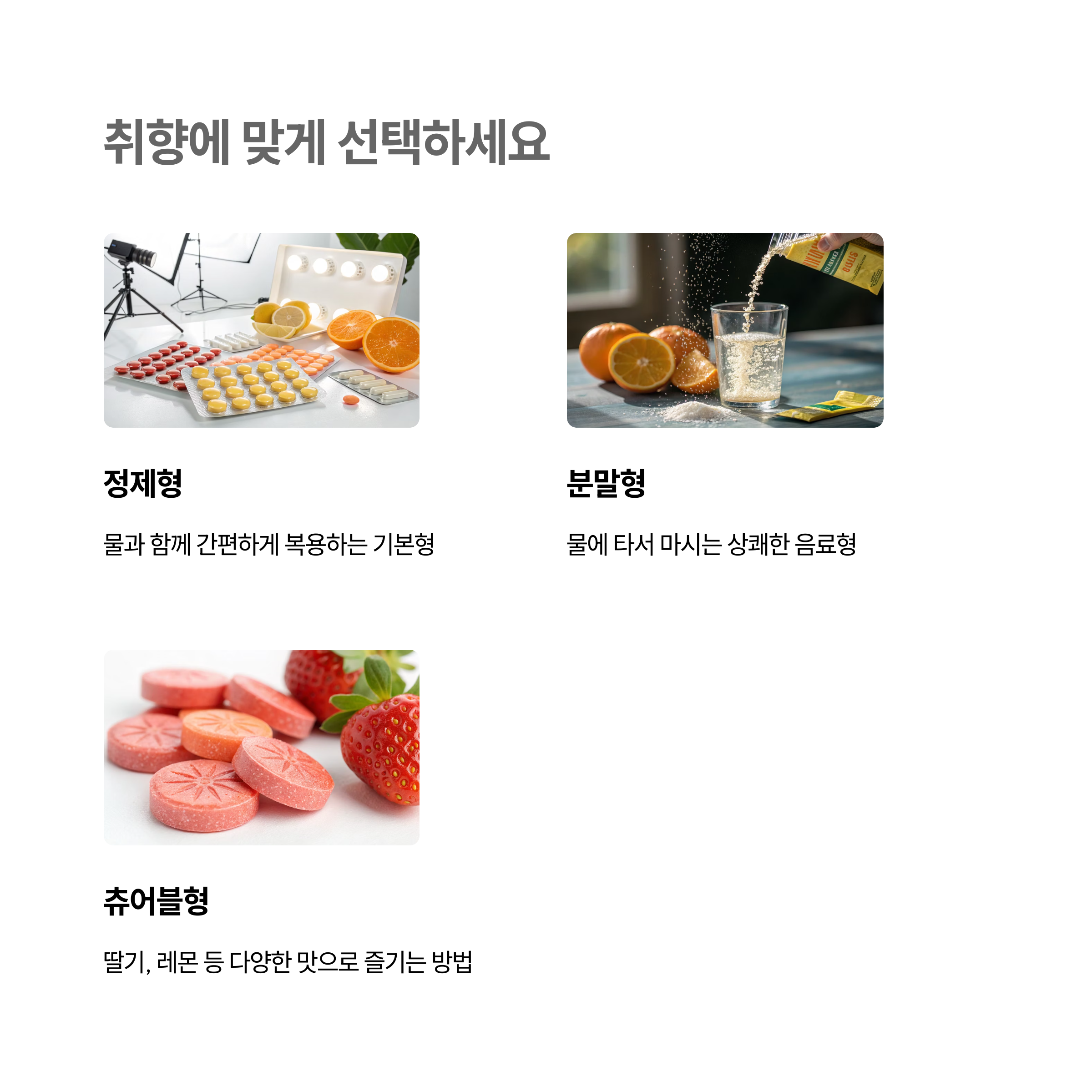 "내 입맛에 맞는 비타민C, 선택할 수 있어야 꾸준히 먹습니다" 지루한 건강 루틴에 작은 재미를 더해보세요.