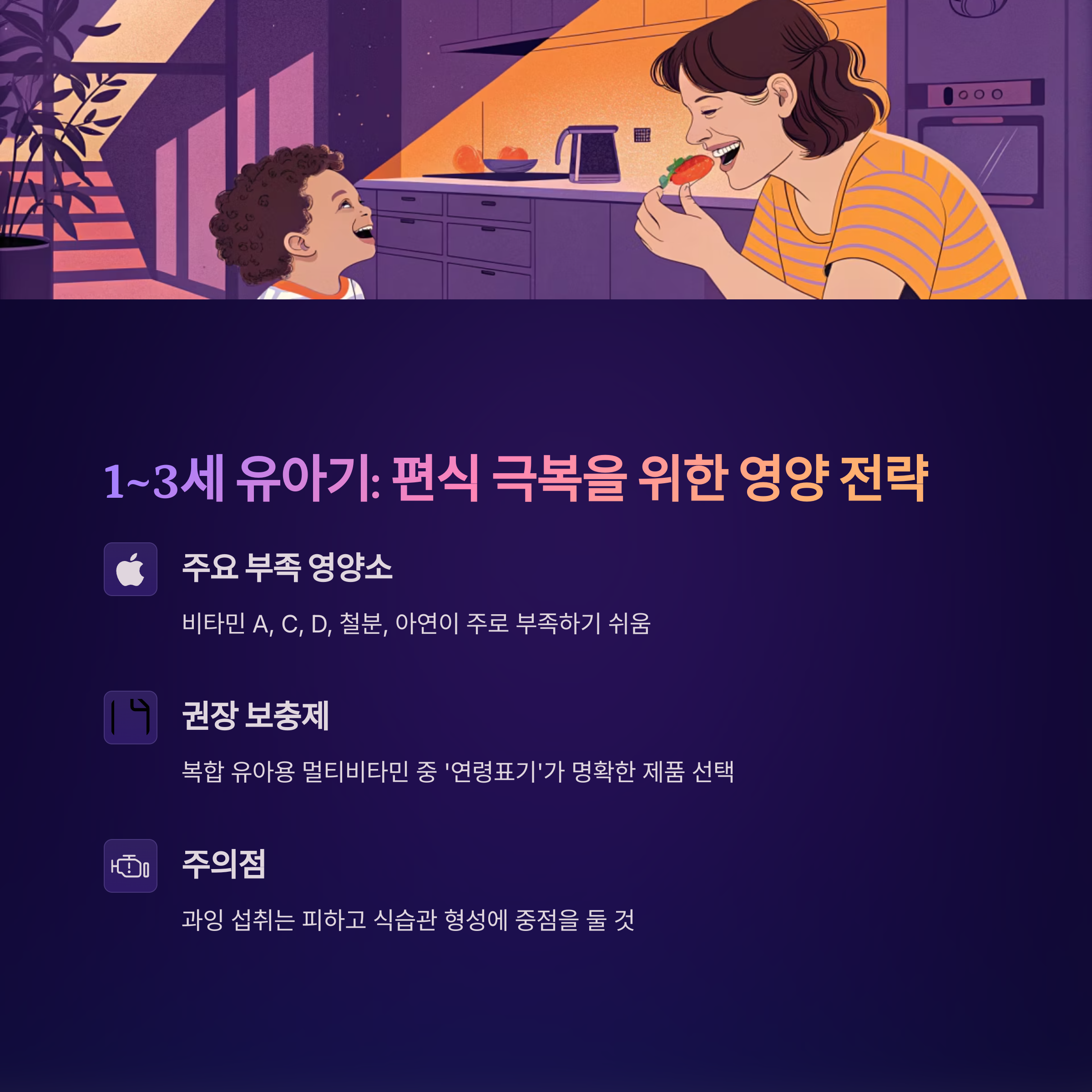 단, 과잉 섭취는 피하고, 복합 유아용 멀티비타민 중 '연령표기'가 명확한 제품을 선택하세요.