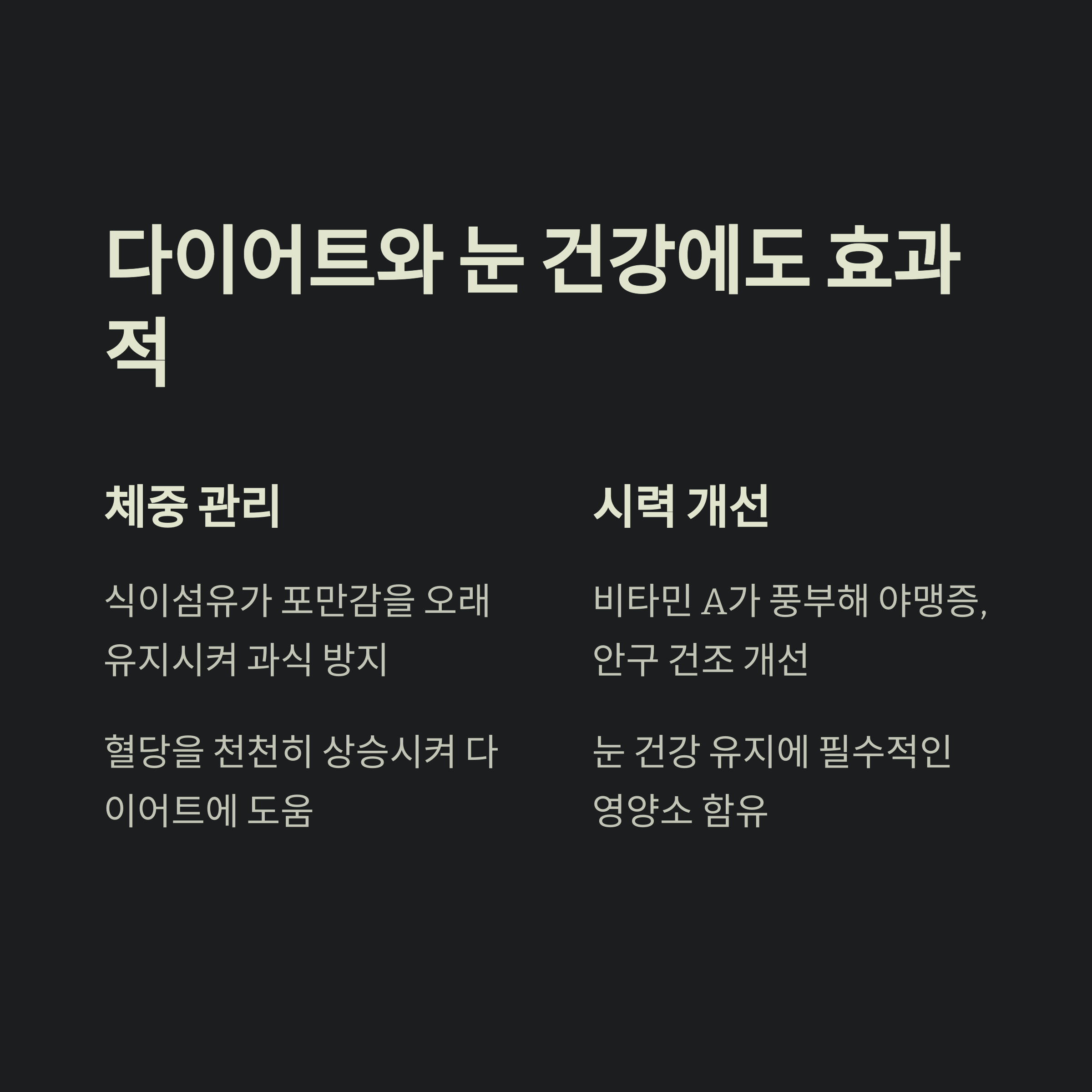 혈당 상승을 억제해 군것질을 줄이는 데 효과적입니다.