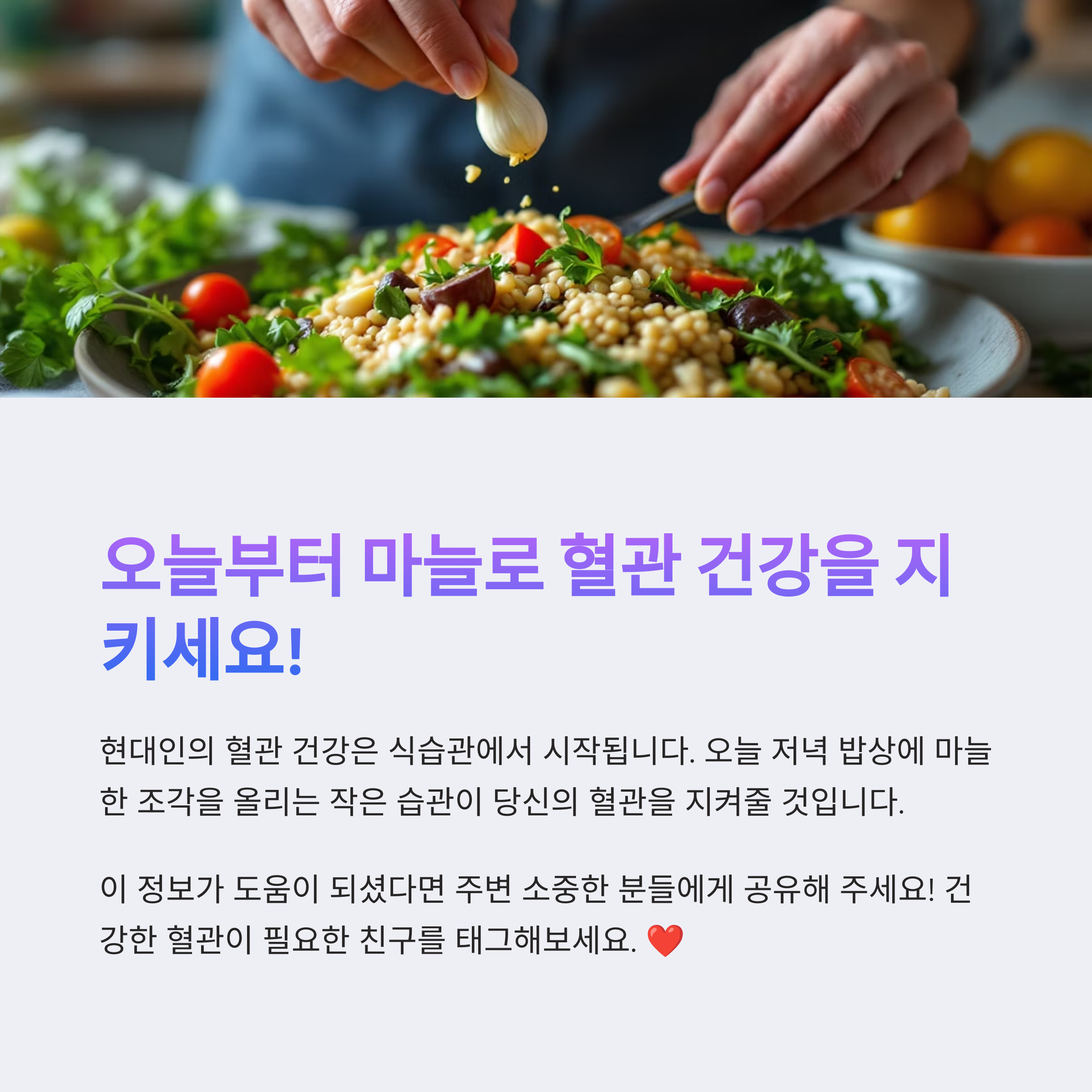 지금 바로 냉장고 속 식재료를 점검하고, 식단을 리셋해보세요. 당신의 건강한 혈관, 스스로 지킬 수 있습니다.