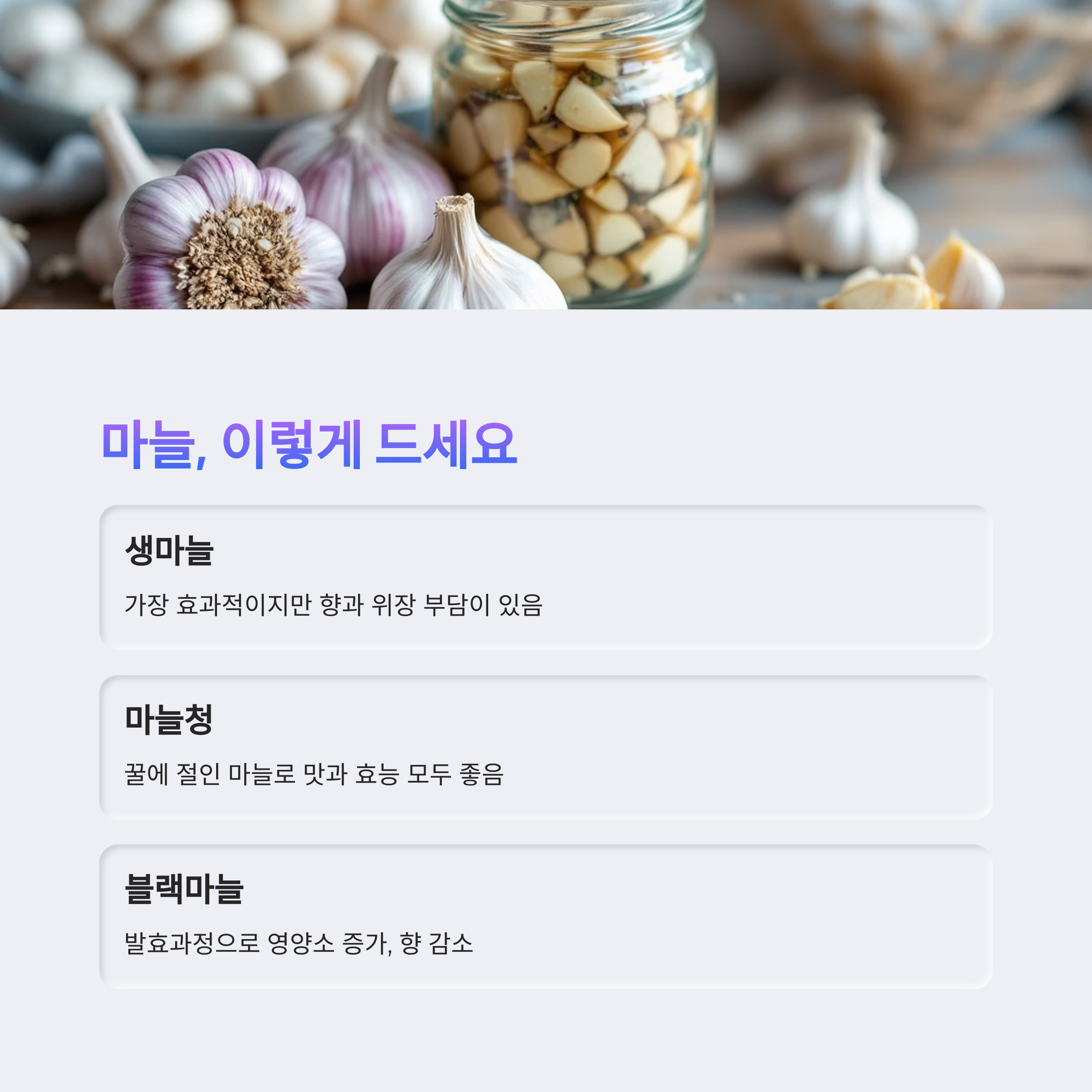 Q1. 마늘은 생으로 먹는 것이 가장 좋은가요?