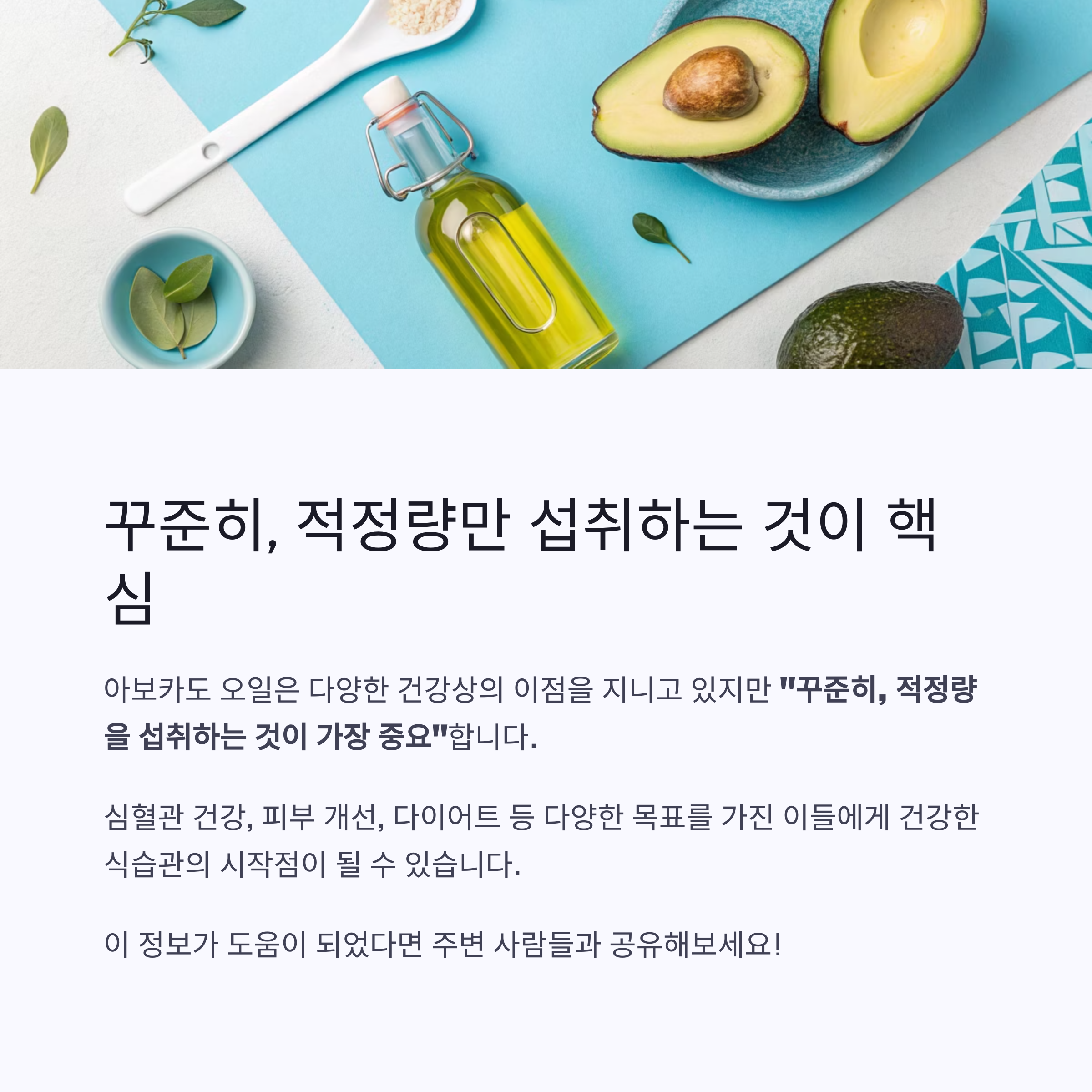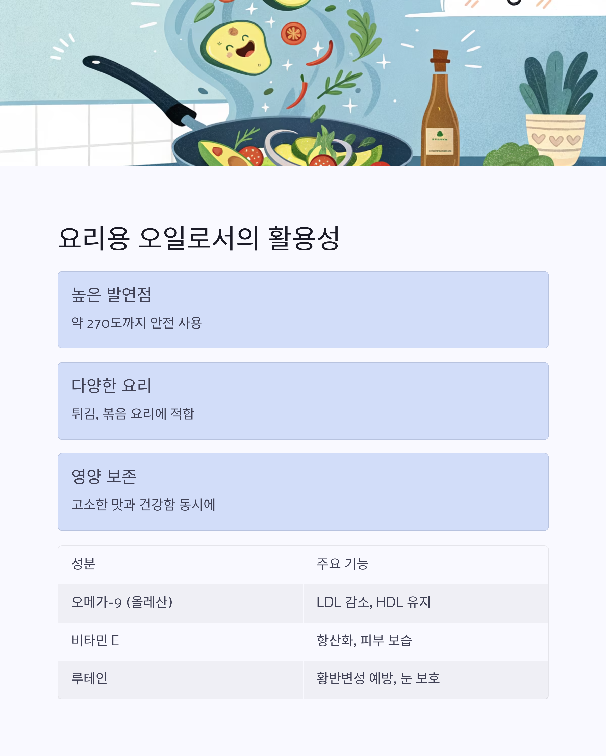 아보카도 오일은 불포화지방산과 항산화 성분이 풍부해