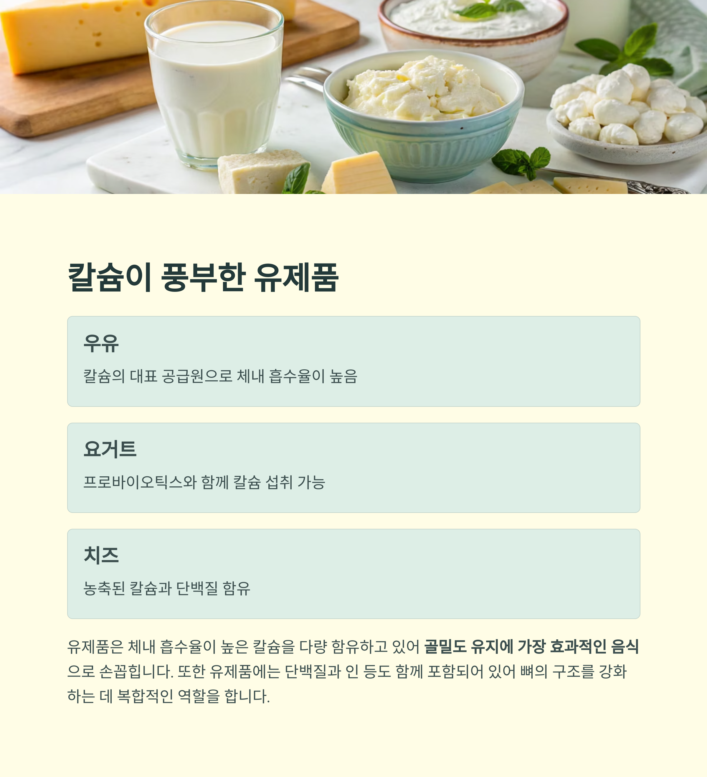 유제품은 체내 흡수율이 높은 칼슘을 다량 함유하고 있어