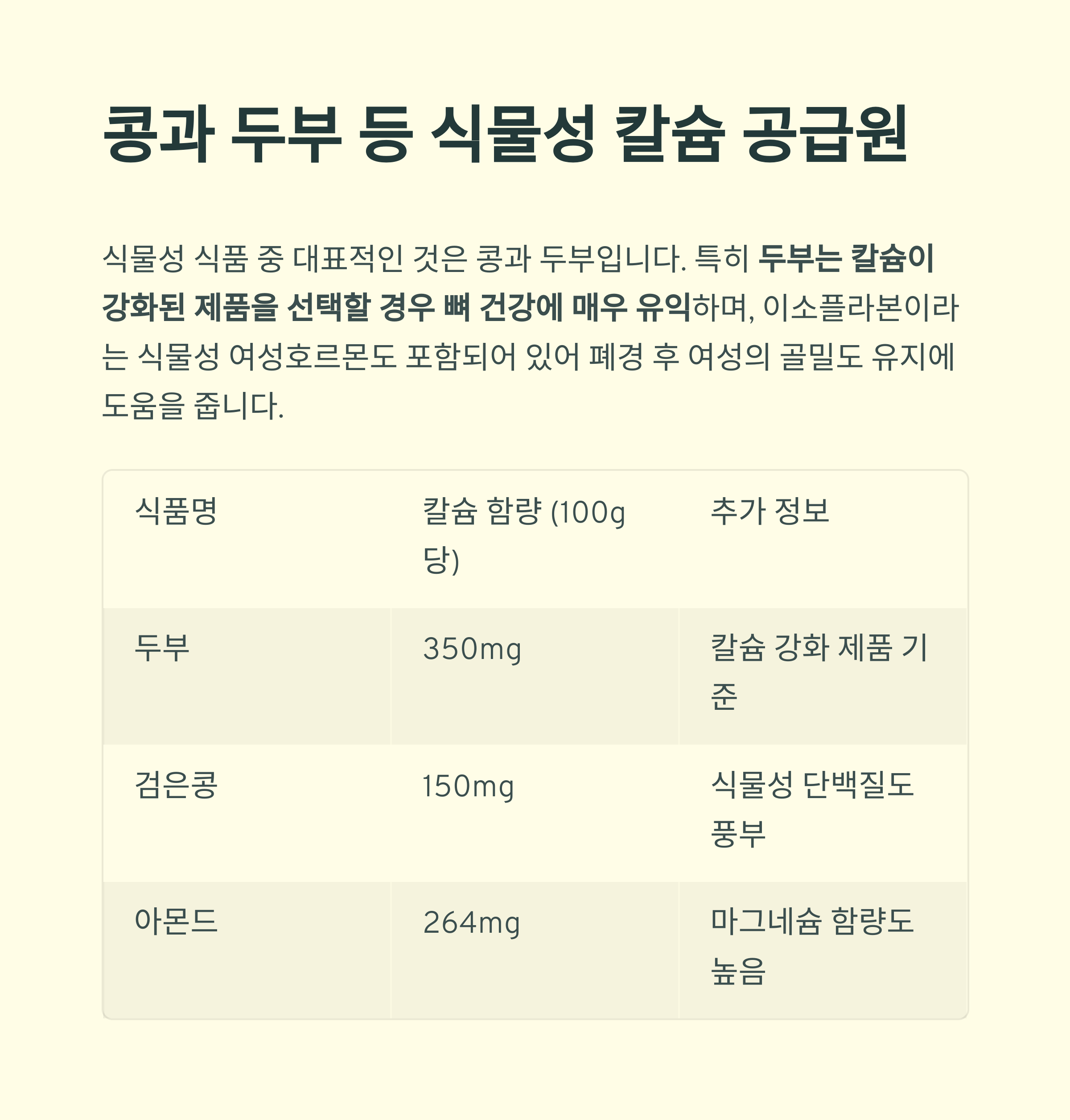 아래 표는 주요 식물성 칼슘 식품입니다: