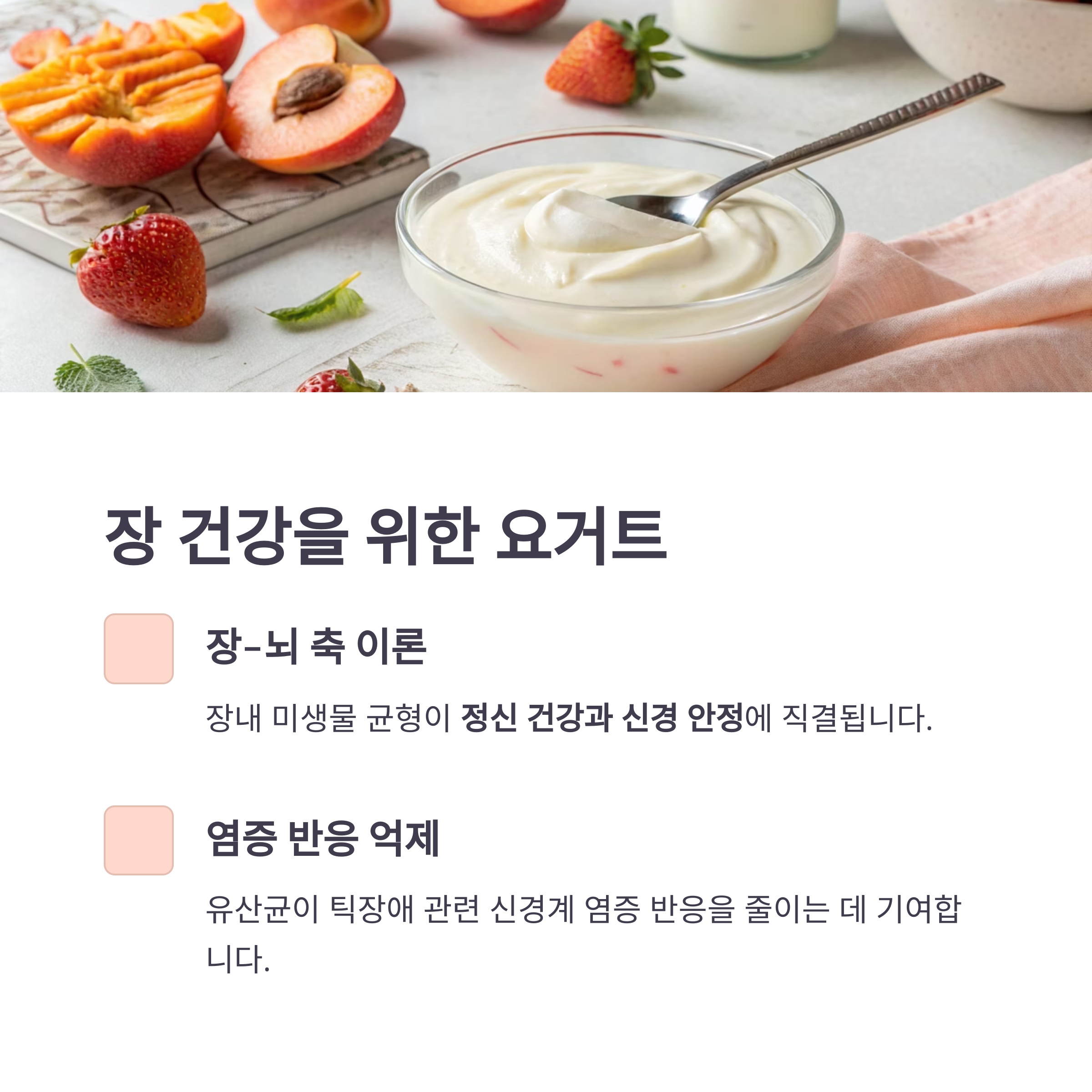 요거트에 포함된 유산균은 장내 유해균 억제 및 면역 조절을 통해