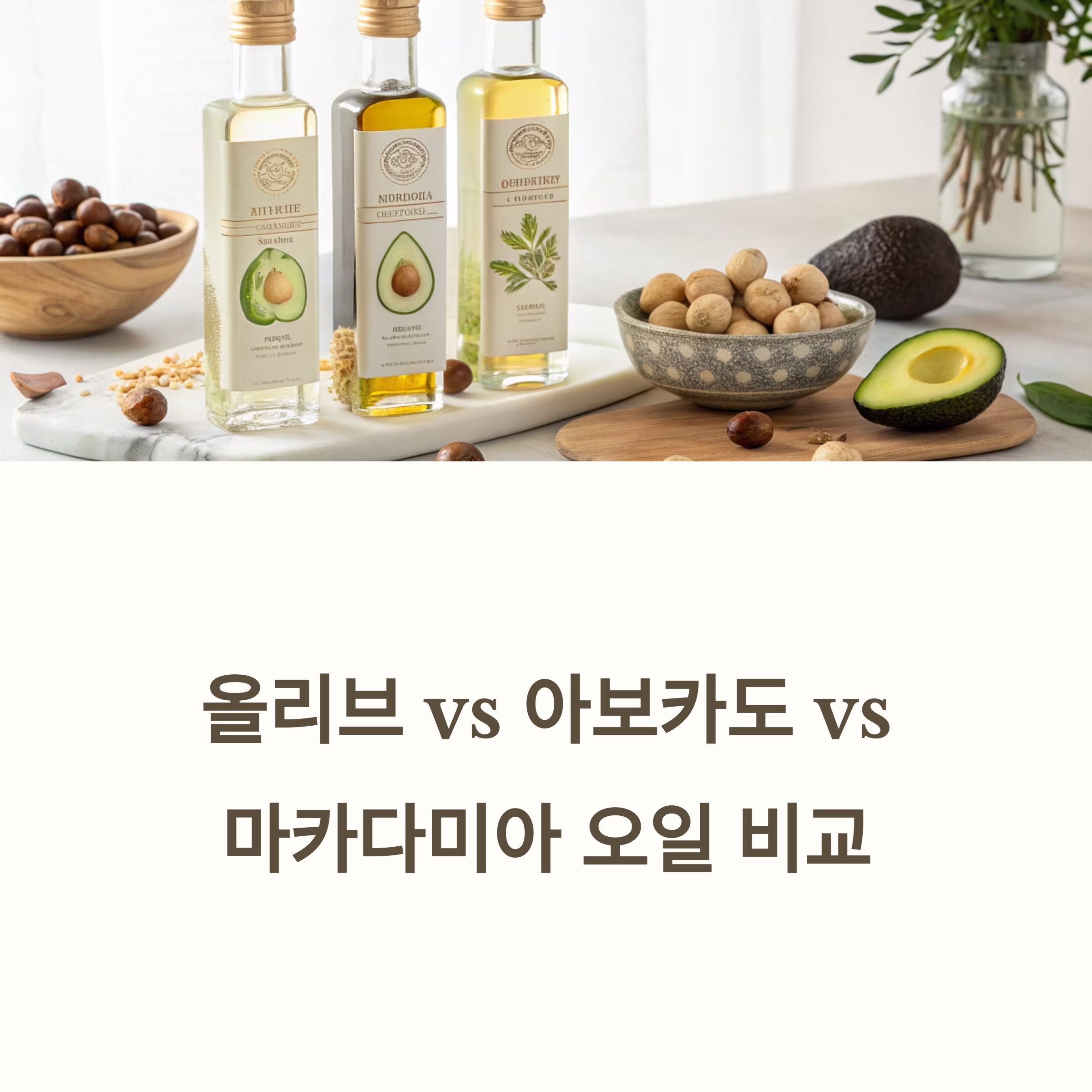 올리브, 아보카도, 마카다미아 오일 비교 분석과 활용 가이드