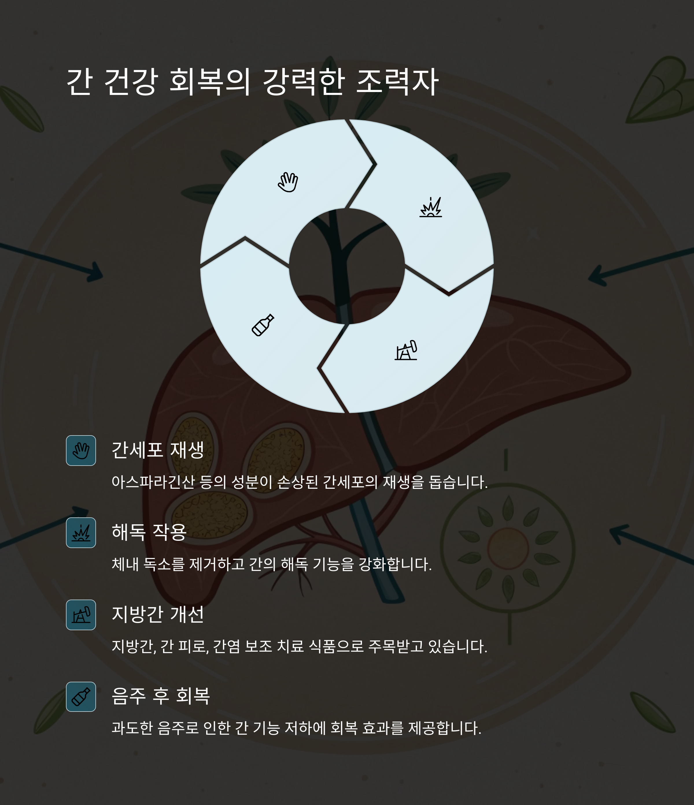 아스파라긴산 등의 성분이 간세포 재생과 해독 작용을 도우며