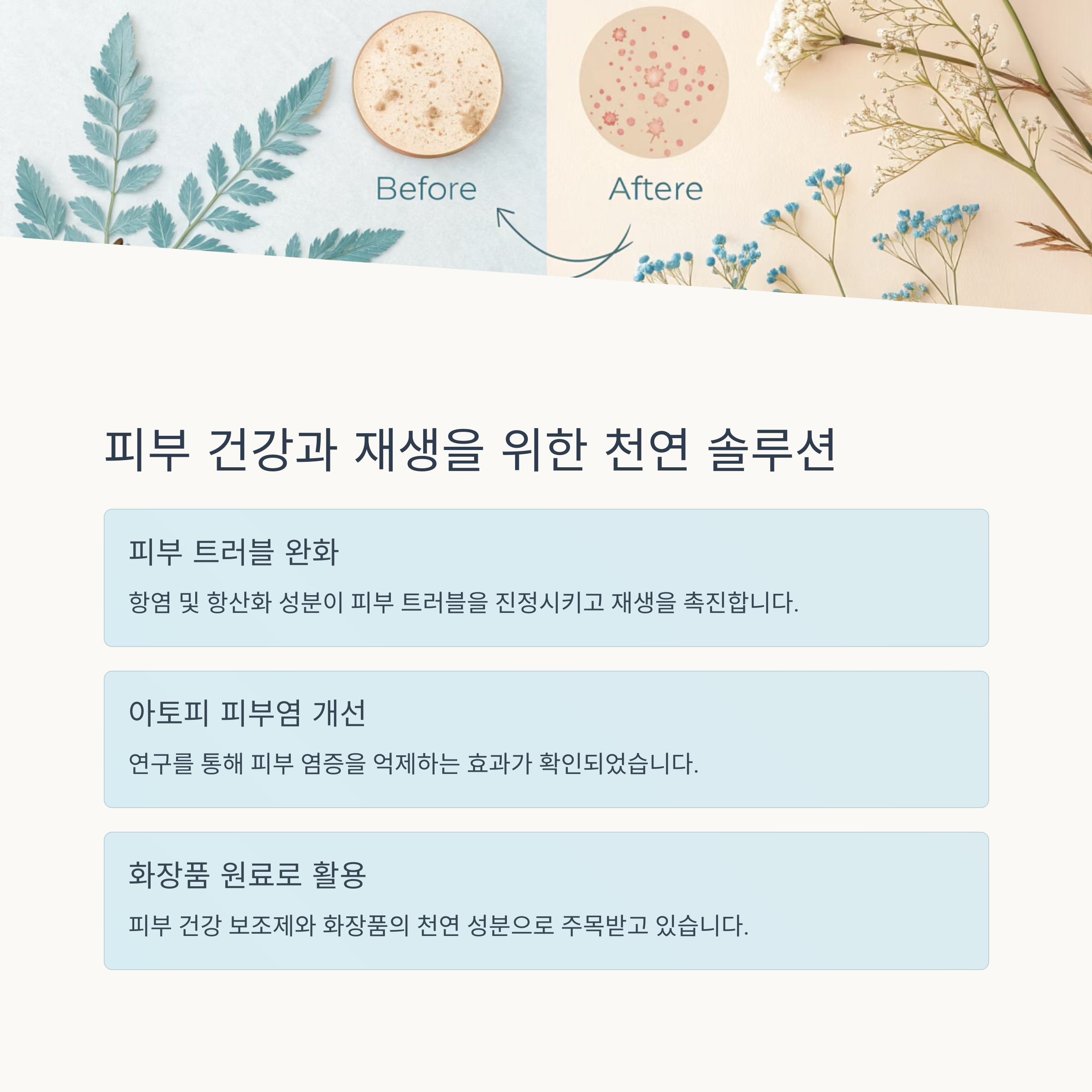 아토피 피부염 관련 연구에서는 피부 염증 억제 효과도 확인되었습니다.