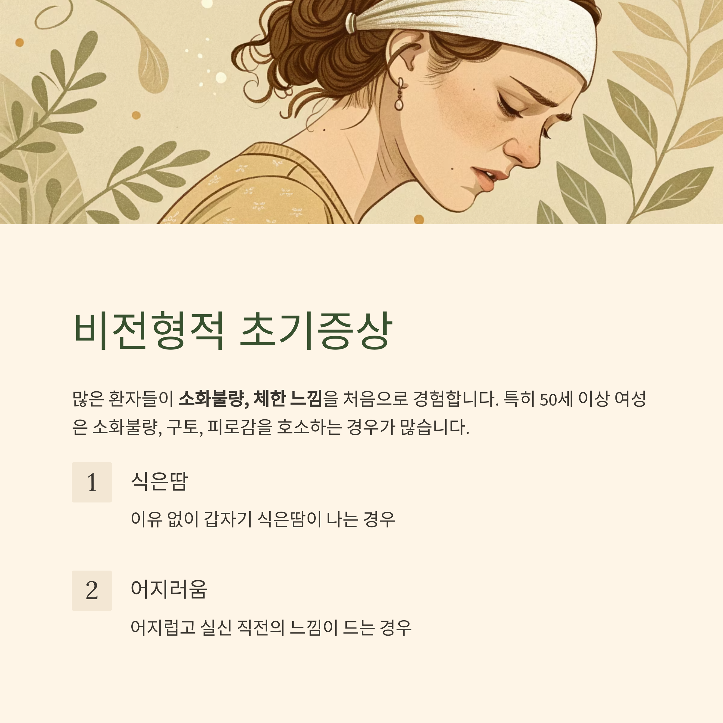 - 병원에서도 위장 질환으로 오인받는 경우가 많아 진단이 늦어질 수 있습니다