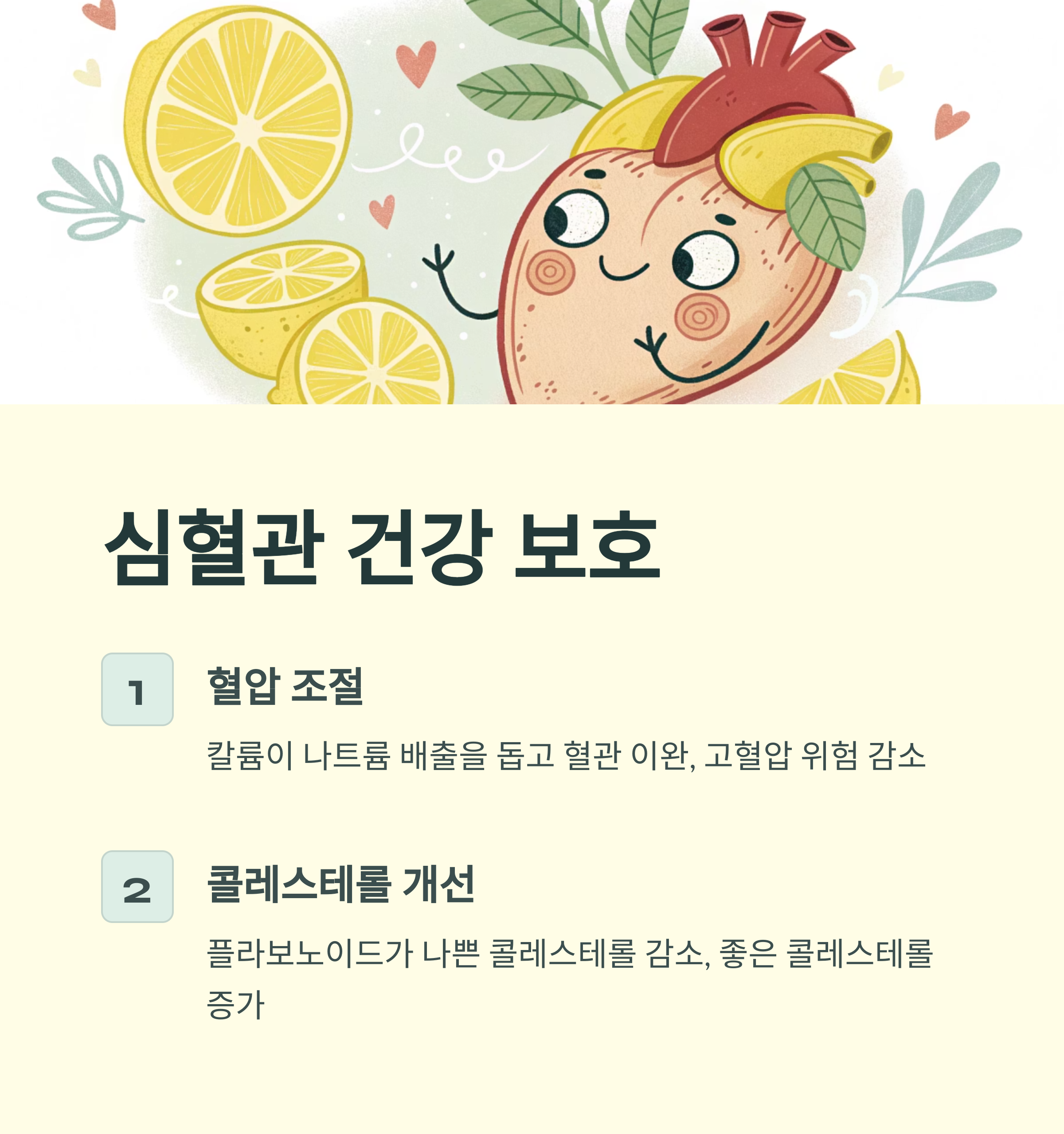 레몬즙은 심혈관 질환 예방에도 중요한 역할을 합니다.