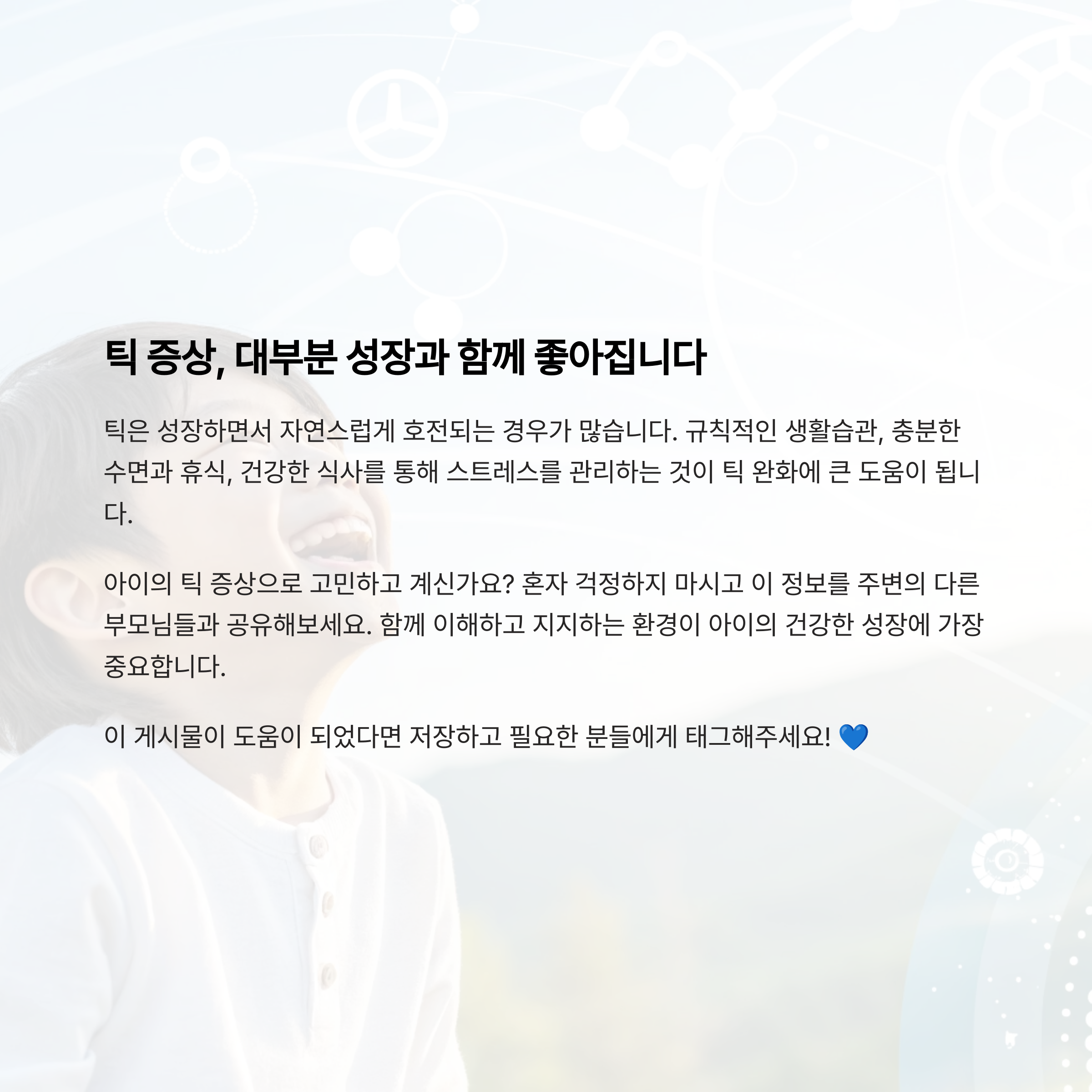 틱은 대부분 일시적이며 자연스럽게 사라지는 경우가 많습니다.
