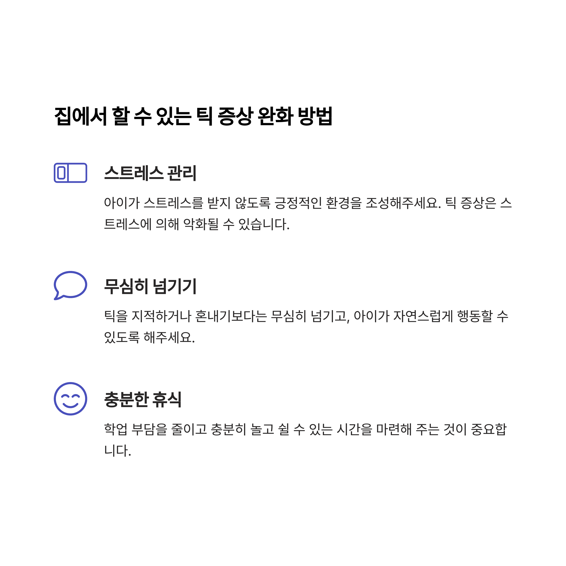 환경을 만들어 주세요. 틱을 지적하거나 혼내기보다는