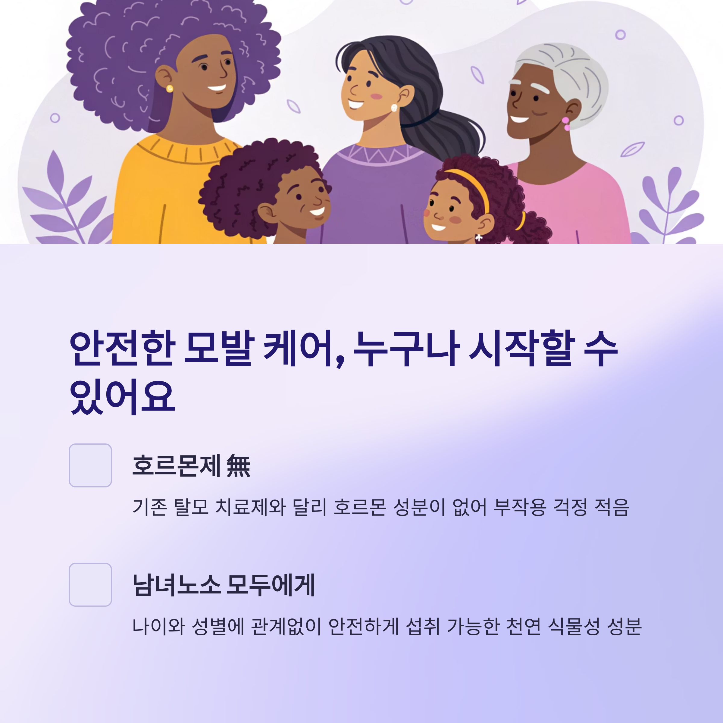 모낭 세포 증식을 도와 건강한 성장 환경을 조성합니다.