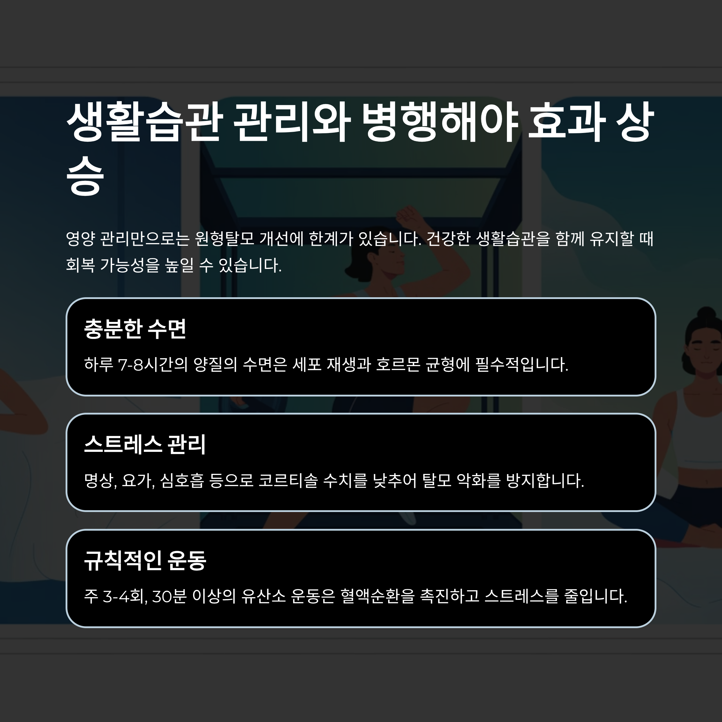 균형 잡힌 식단과 적절한 영양제 섭취는 모발 회복과 두피 건강에 긍정적인