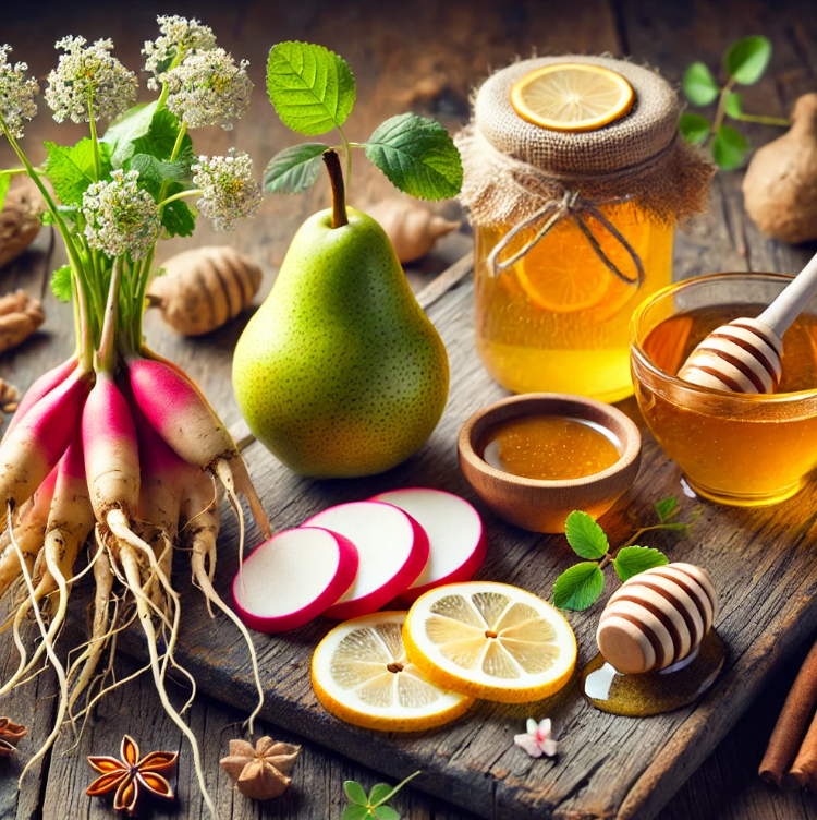 꿀은 오래전부터 기침 완화에 사용된 자연 요법입니다. 꿀에 포함된 덱스트로메토르판 성분은 기침 억제 및 기관지 염증 완화에 도움을 줍니다. 따뜻한 물에 꿀을 섞어 마시면 효과가 더욱 좋아집니다.