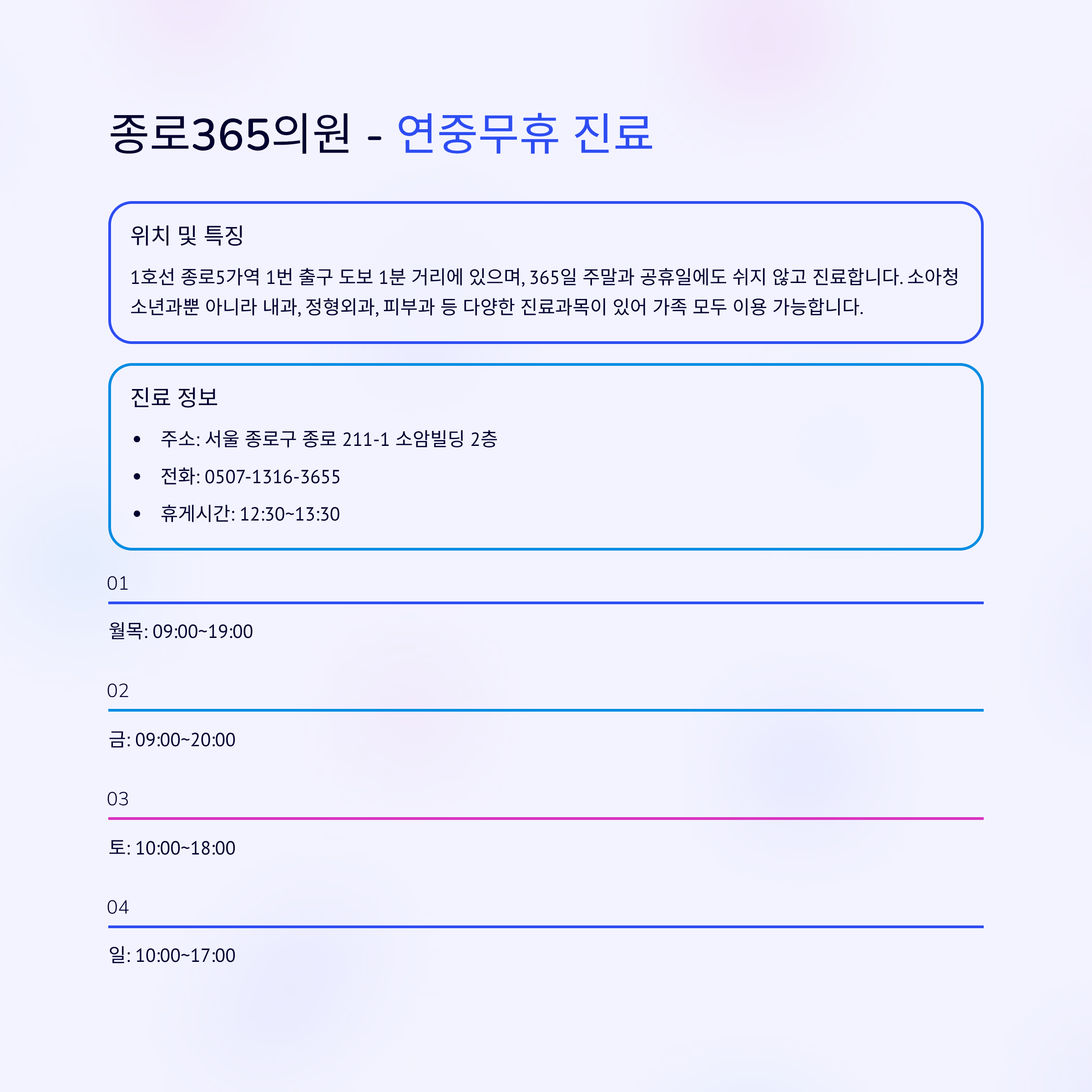종로365의원 - 연중무휴 진료