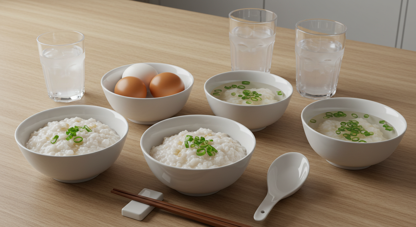 가장 좋은 식단은 흰죽, 맑은국, 삶은 계란, 미역국(건더기 없이) 같은 부드러운 구성입니다.